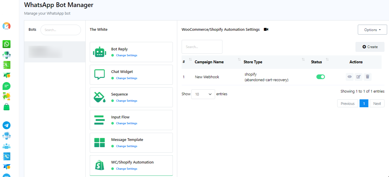 - Access the WooCommerce and Shopify Automation section in CRMautoBOT.